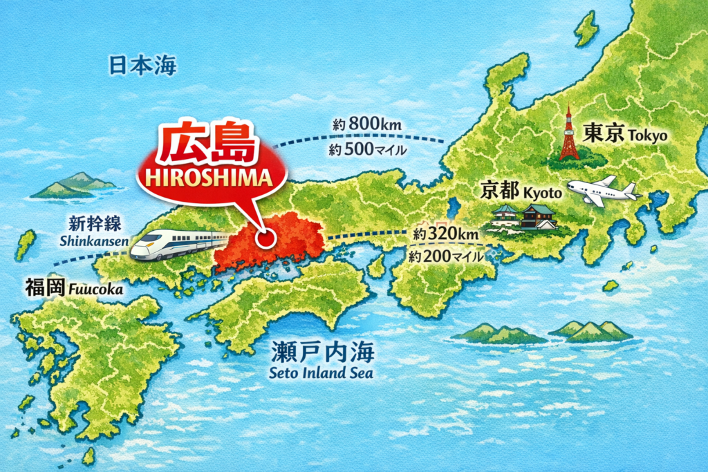 Hiroshima is perfectly positioned as a major stop between the Kansai region (Osaka/Kyoto) and Kyushu (Fukuoka).